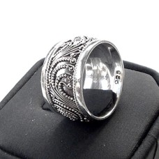 Genuine Bali Oxidized Beaded Sterling Silver Wide Cigar Band / Ring with Rope Edge.